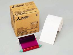 Kit de impresión Mitsubishi CKK76R compuesto por 2 bobinas de papel y 2 ribbon para impresora CP-K60DW-S . Nuevo papel CK-K76R HG, mayor calidad y color mejorado.